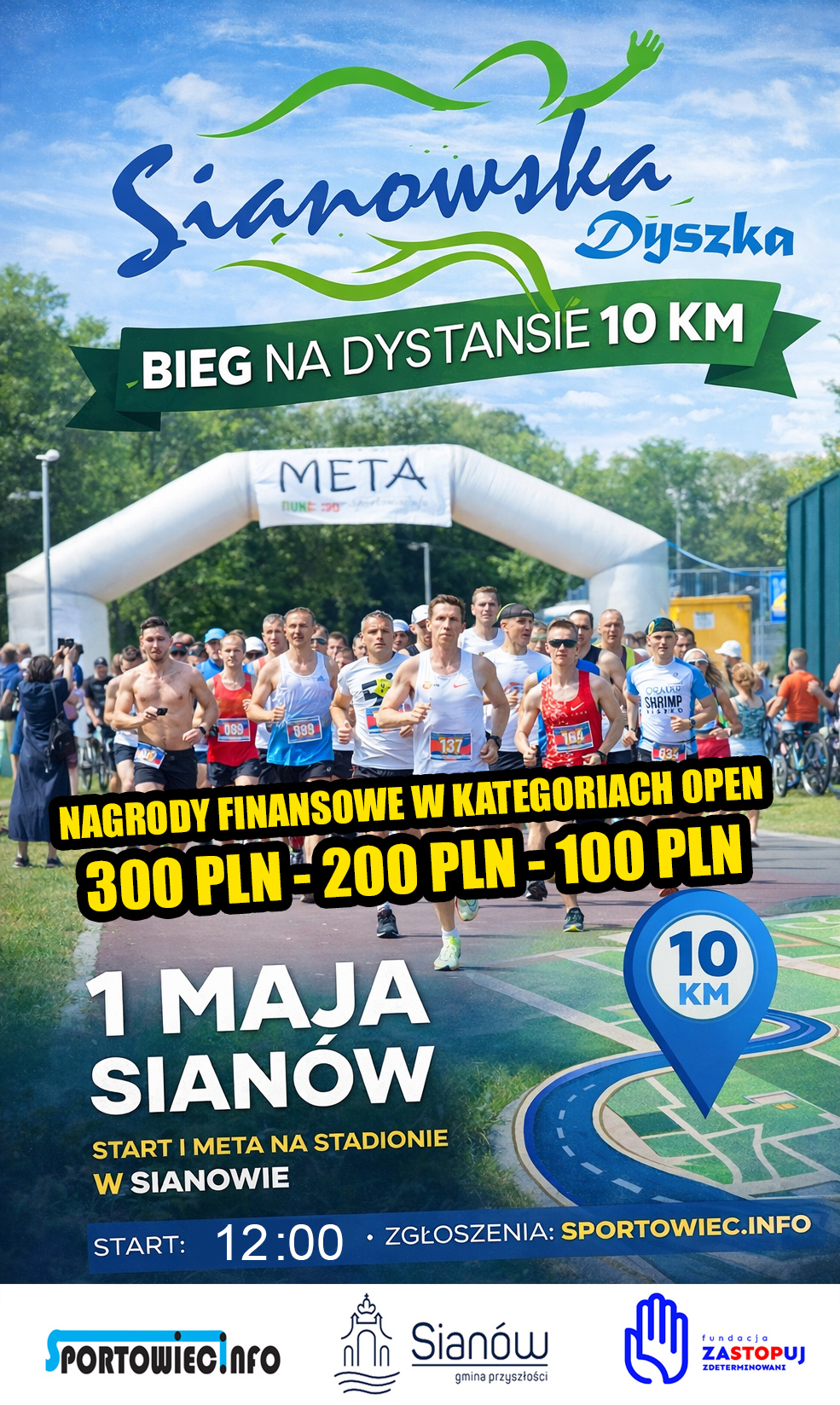 Ponadto w biegu Godzinna Sianowska Majówka 2024 wygrywa Mariusz Borychowski, który wygrał, również w 2023 roku. Wśród kobiet wygrała Paulina Pietrzyk, mieszkanka Sianowa zna ten stadion jak własną kieszeń! Gratulujemy